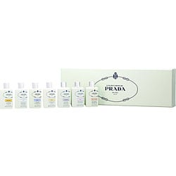 PRADA INFUSION VARIETY by Prada - 7 PIECE MINI VARIETY WITH IRIS & IRIS CEDRE & FLEUR D'ORANGER & AMANDE & MIMOSA & ROSE & MANDARINE AND ALL ARE EAU DE PARFUM 0.27 OZ MINI